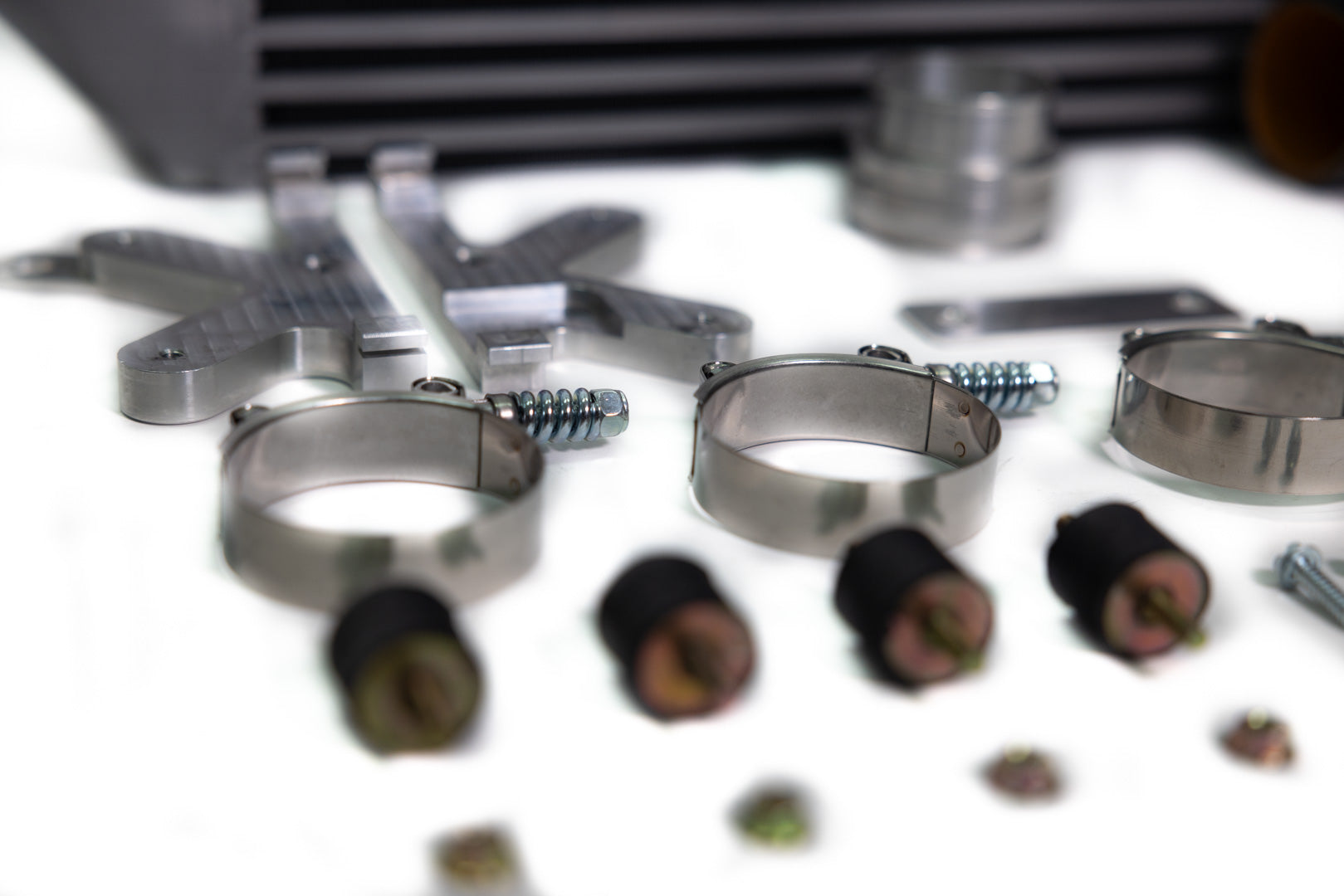 The ARM MK6 Competition FMIC comes with upgraded intercooler piping for the hot and cold sides of the FMIC. This piping is comprised of 6-layer reinforced silicone tested to handle up to 60psi. Securing the intercooler piping is our constant-tension T-bolt clamps which will not break or loosen over time.